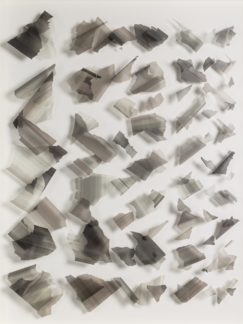 The compositions are balanced, repetitive and musical. In an increasingly disintegrating world, the fragmentation and tearing of beautifully modulated surfaces is a calculated act of destruction. Careful repositioning and reconstruction with an almost mathematical precision suggests an attempt, intended or not, to reconfigure the original beauty - an attempt to rationalise a broken world order.