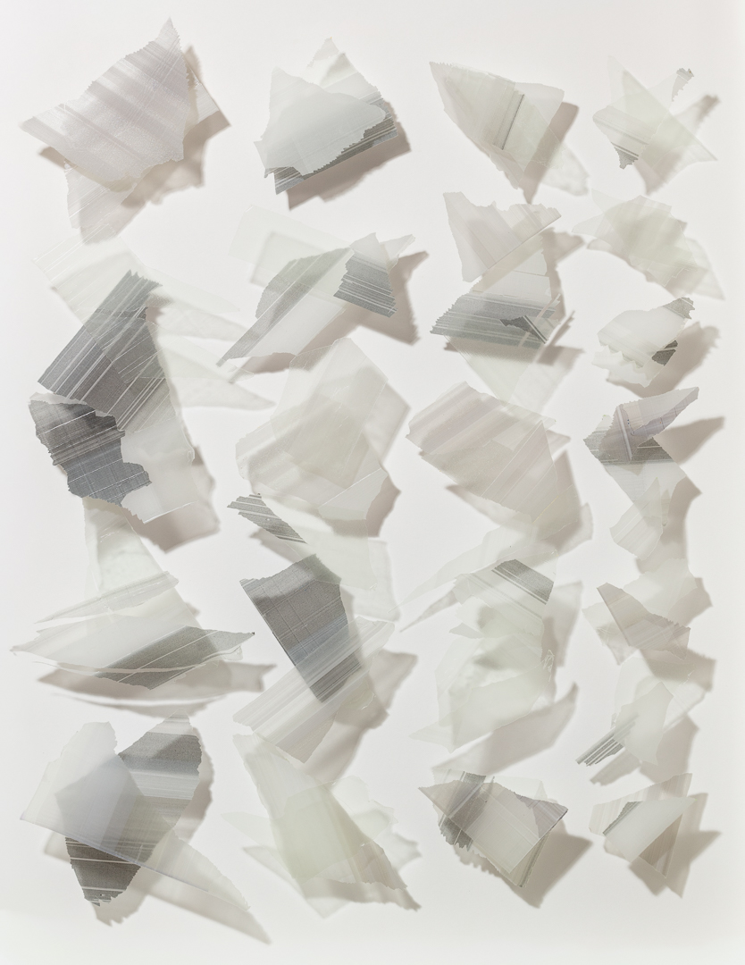 The compositions are balanced, repetitive and musical. In an increasingly disintegrating world, the fragmentation and tearing of beautifully modulated surfaces is a calculated act of destruction. Careful repositioning and reconstruction with an almost mathematical precision suggests an attempt, intended or not, to reconfigure the original beauty - an attempt to rationalise a broken world order.